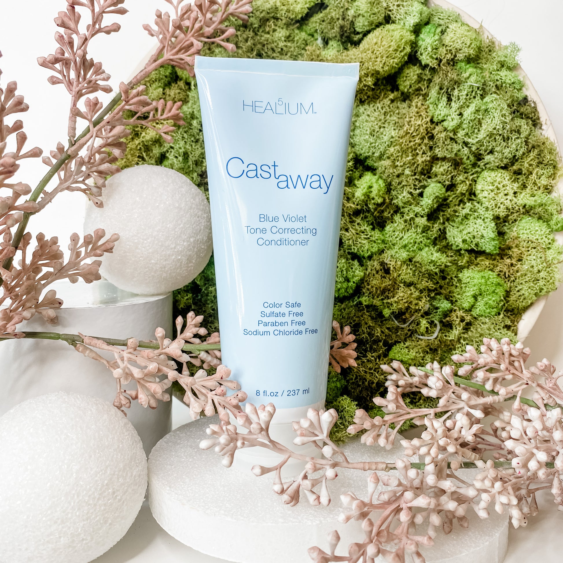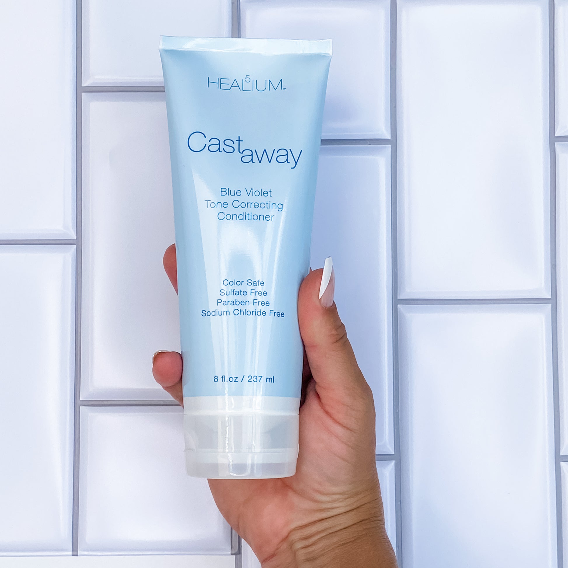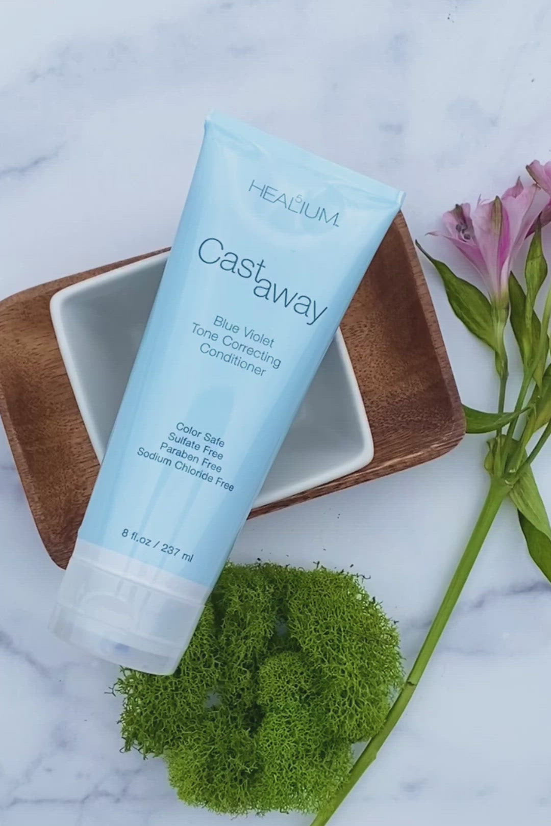 The cuticle continues to open in the shower & hot water creates prime conditions to allow color deposit towards the end of your shower. That’s why Castaway Toning Conditioner is able to quickly and easily deposit color-correcting pigments into your hair. Eliminating ‘water stops’ between deposit and styling allows for maximum color correction at home.