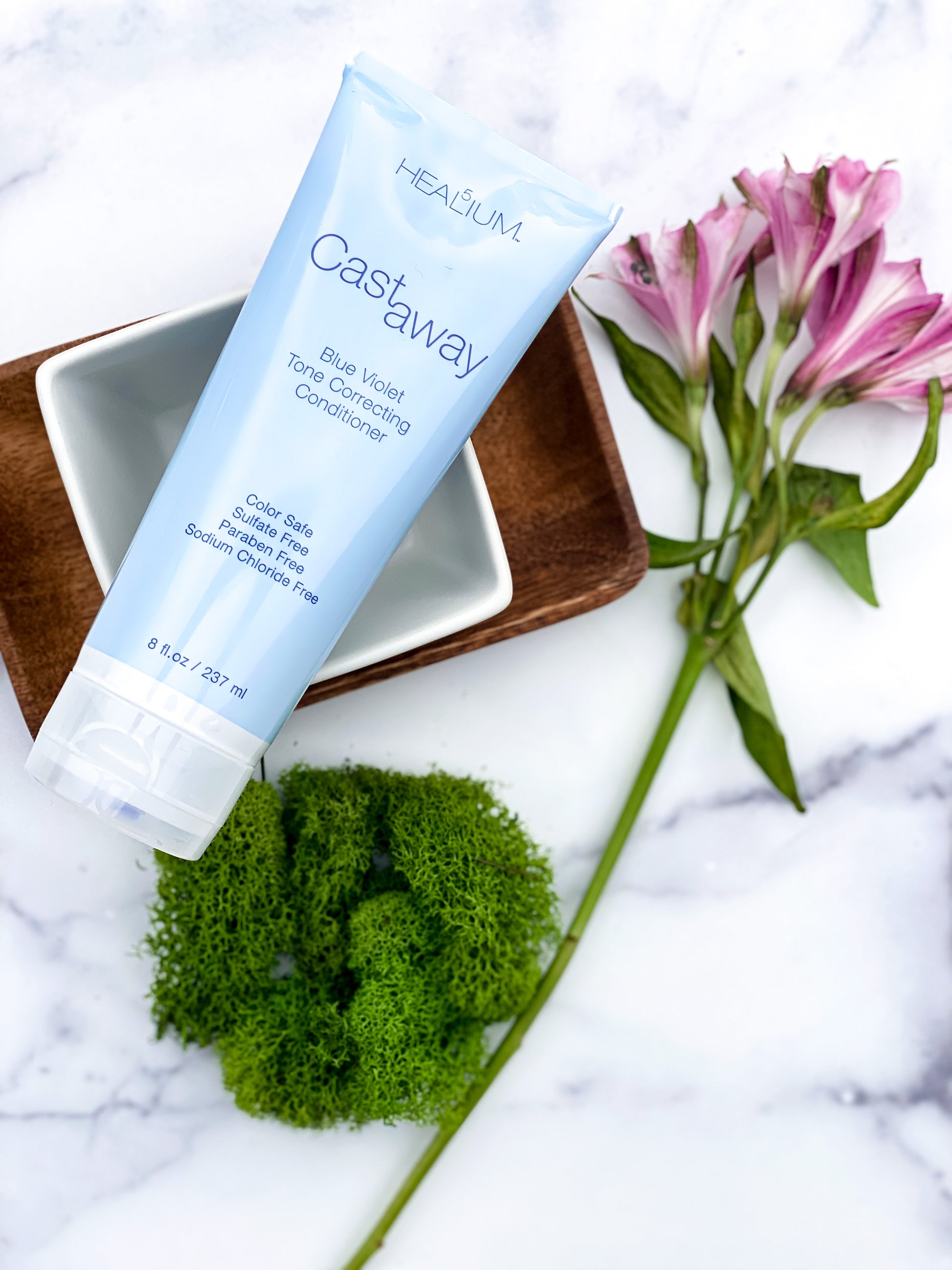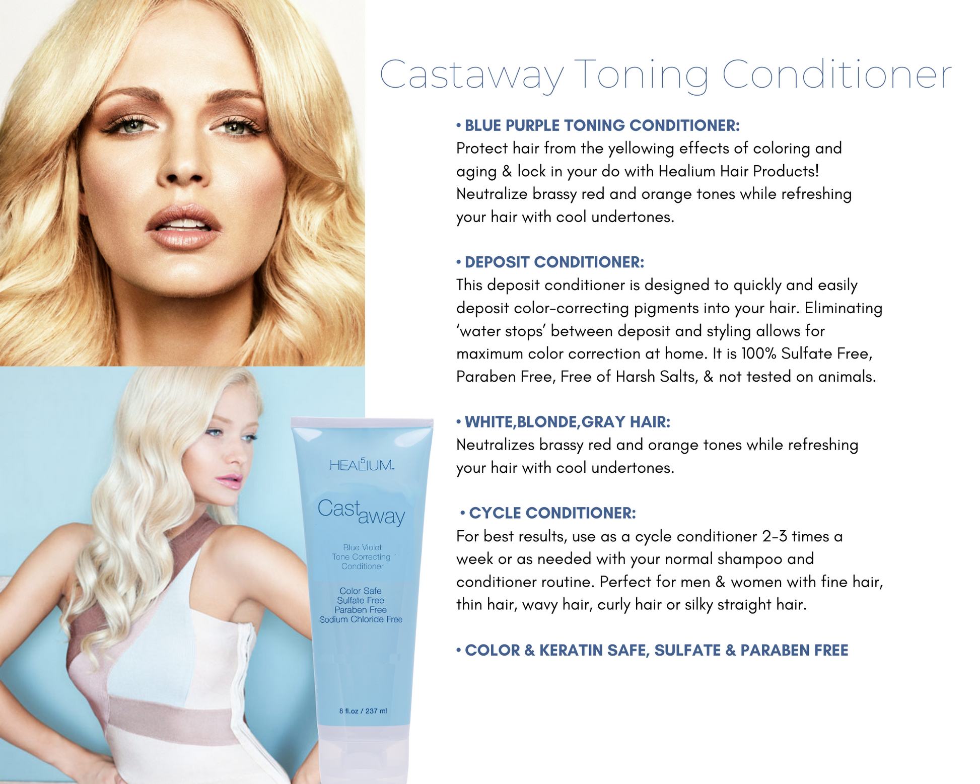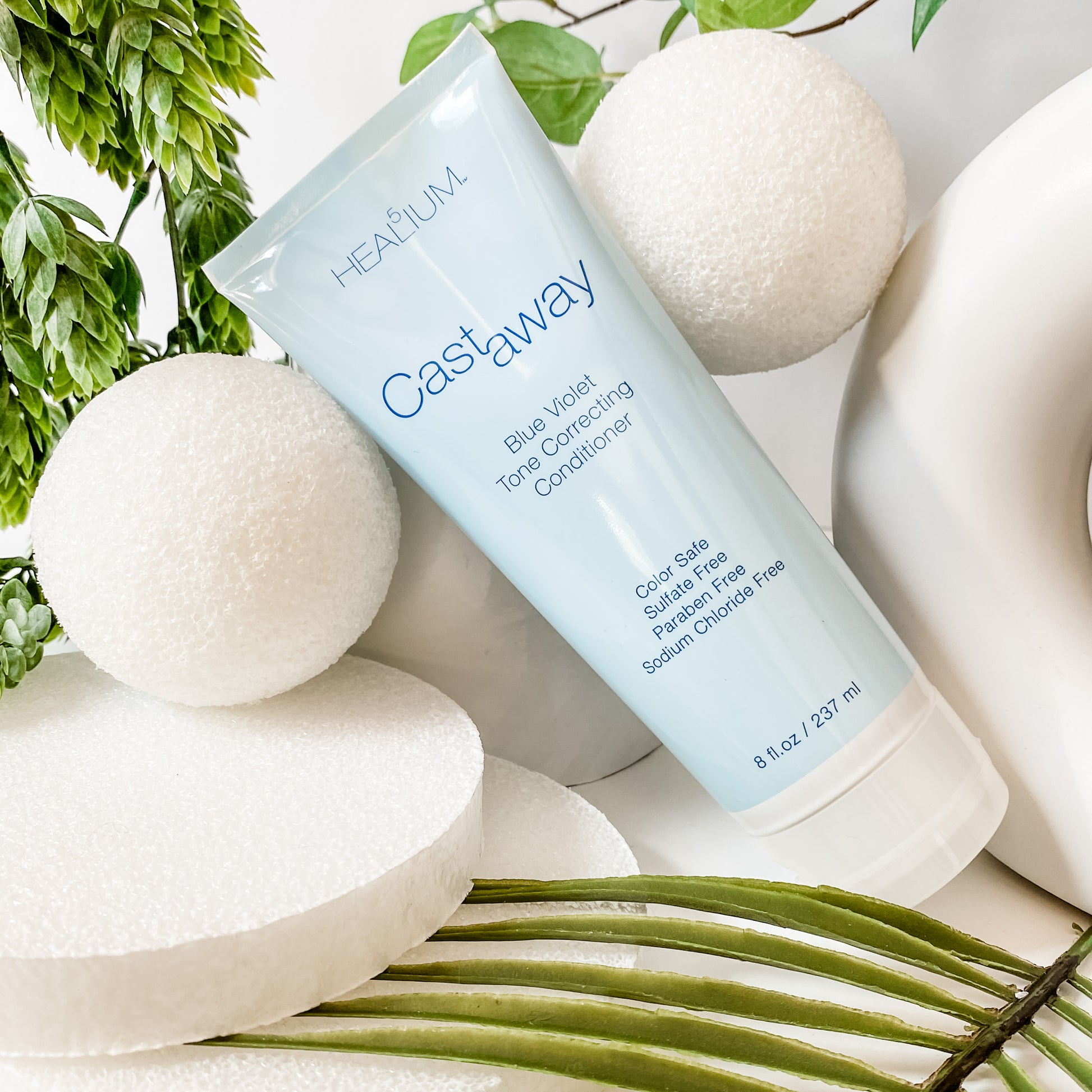 The cuticle continues to open in the shower & hot water creates prime conditions to allow color deposit towards the end of your shower. That’s why Castaway Toning Conditioner is able to quickly and easily deposit color-correcting pigments into your hair. Eliminating ‘water stops’ between deposit and styling allows for maximum color correction at home.