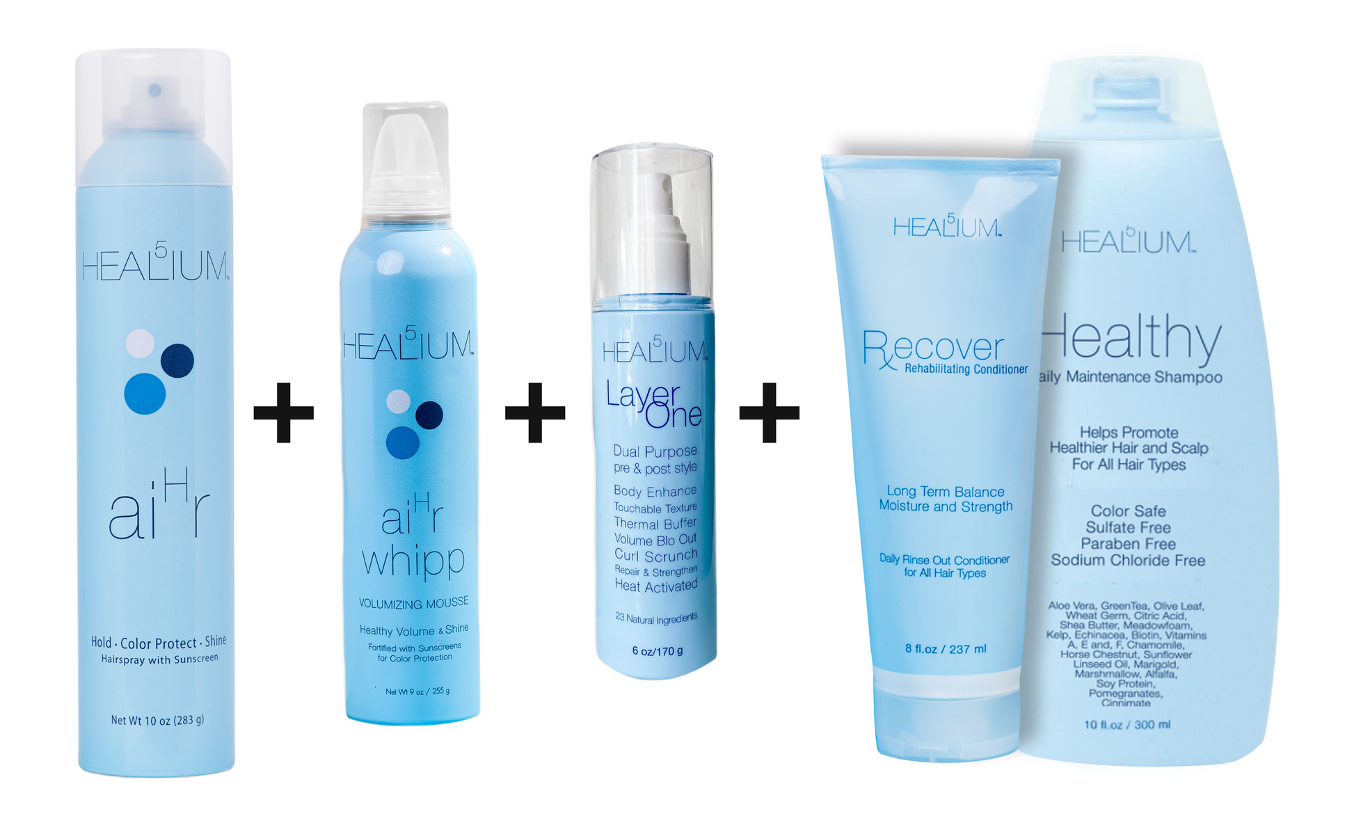 Elevate your hair volume to new heights with our Full Volume Bundle. This comprehensive set not only includes our Layer One Bodifier, aiHr Whipp Mousse, and aiHr Hairspray, but we've also added our Healthy Shampoo and Recover Conditioner. These products work in harmony, starting from cleansing and conditioning your hair to preparing and styling it, ensuring each strand is infused with volume. The Healthy Shampoo and Recover Conditioner nourish and hydrate your hair, forming the perfect base for the volumizing products that follow. This bundle is the complete package for anyone seeking to add lasting volume and vitality to their hair.